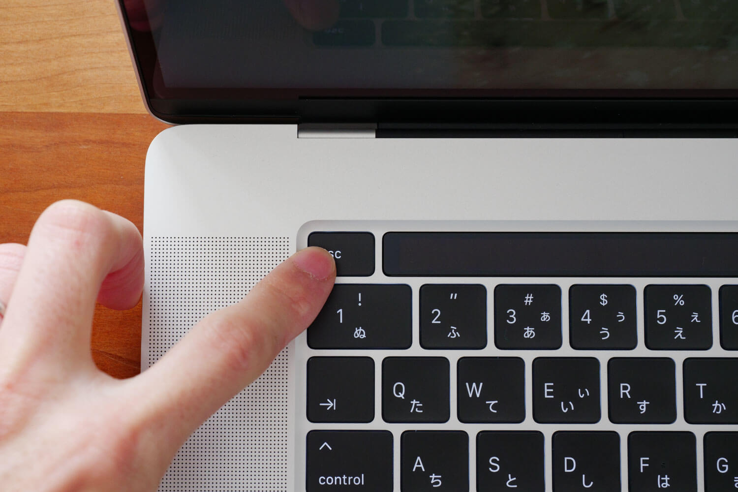 個人的によく使う「Esc」キーがTouch Barから独立し物理キーに。何かとEscキーを押せばキャンセルになるので、結構使っちゃうんですよね。あとは地味にVimエディタを使う時など。ソフトウェアキーだとブラインドタッチできないので、確実に押せる物理キーが嬉しい。