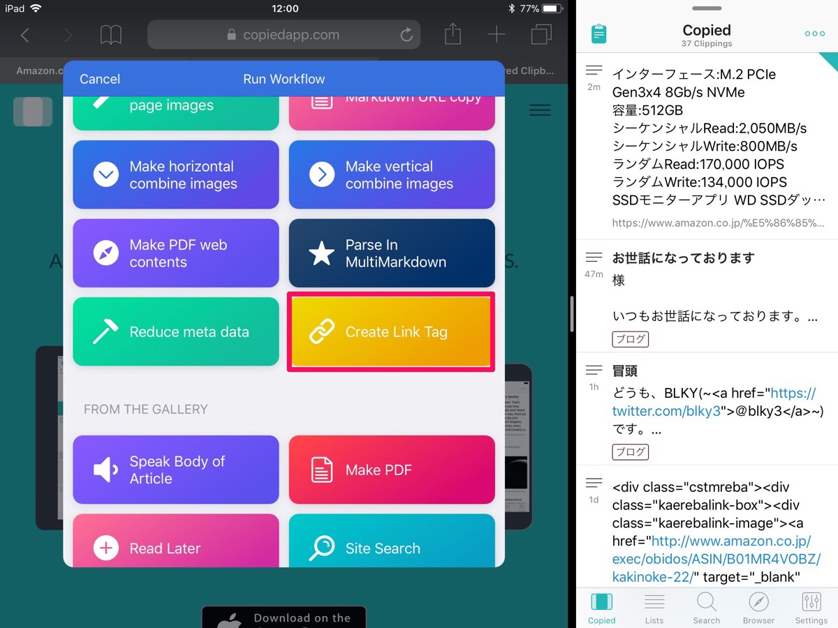 リンクタグを作りたいページで共有ボタンの「Run Workflow」をタップ